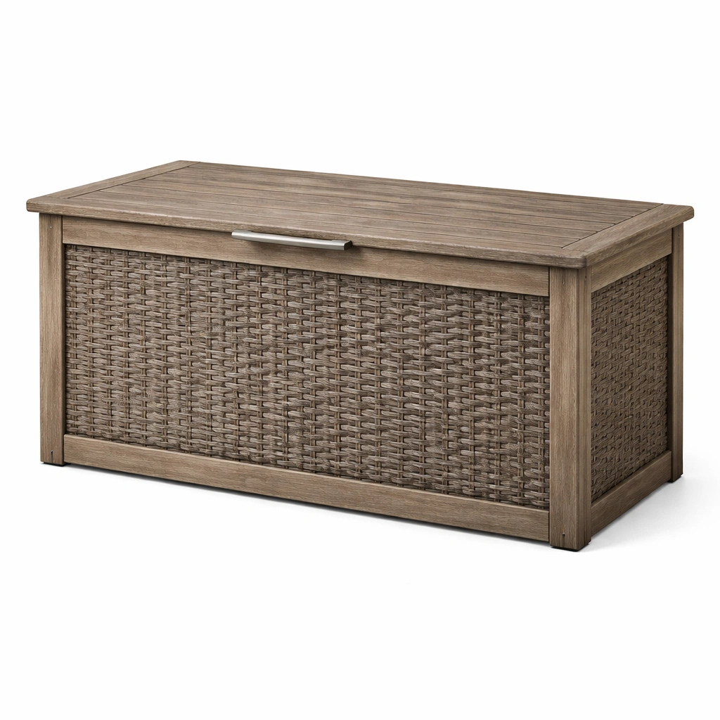 Arcón de almacenamiento para jardín de madera y ratán marrón