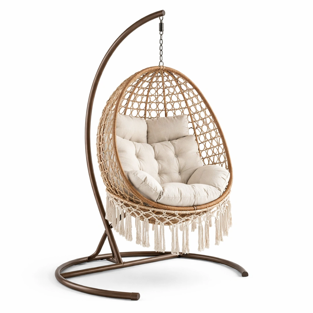 Silla colgante de ratán sintético con soporte de acero