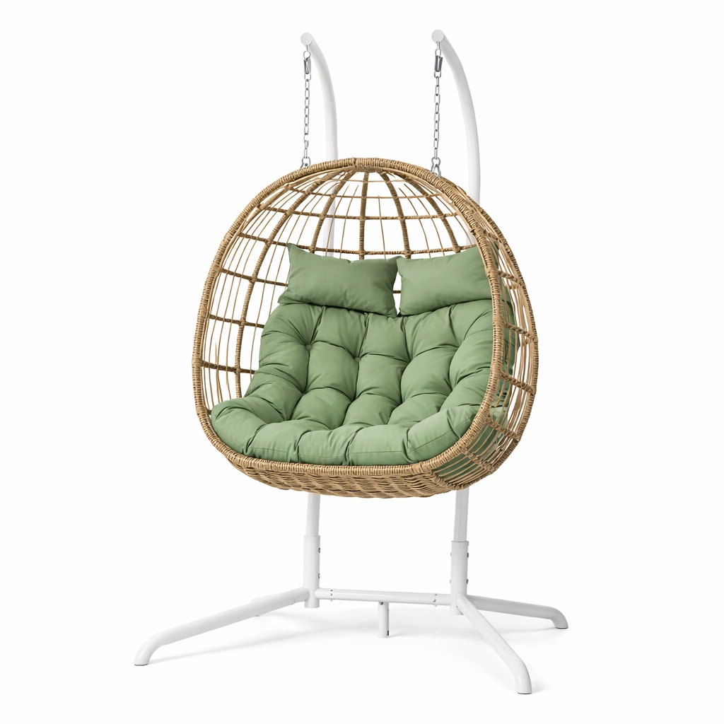 Material: Estructura de ratán y metal, cojines de poliéster con relleno de espuma.